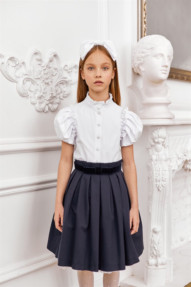 - Блузка выглядит очень нарядно и модно, придает любому школьному образу парадный и праздничный вид.