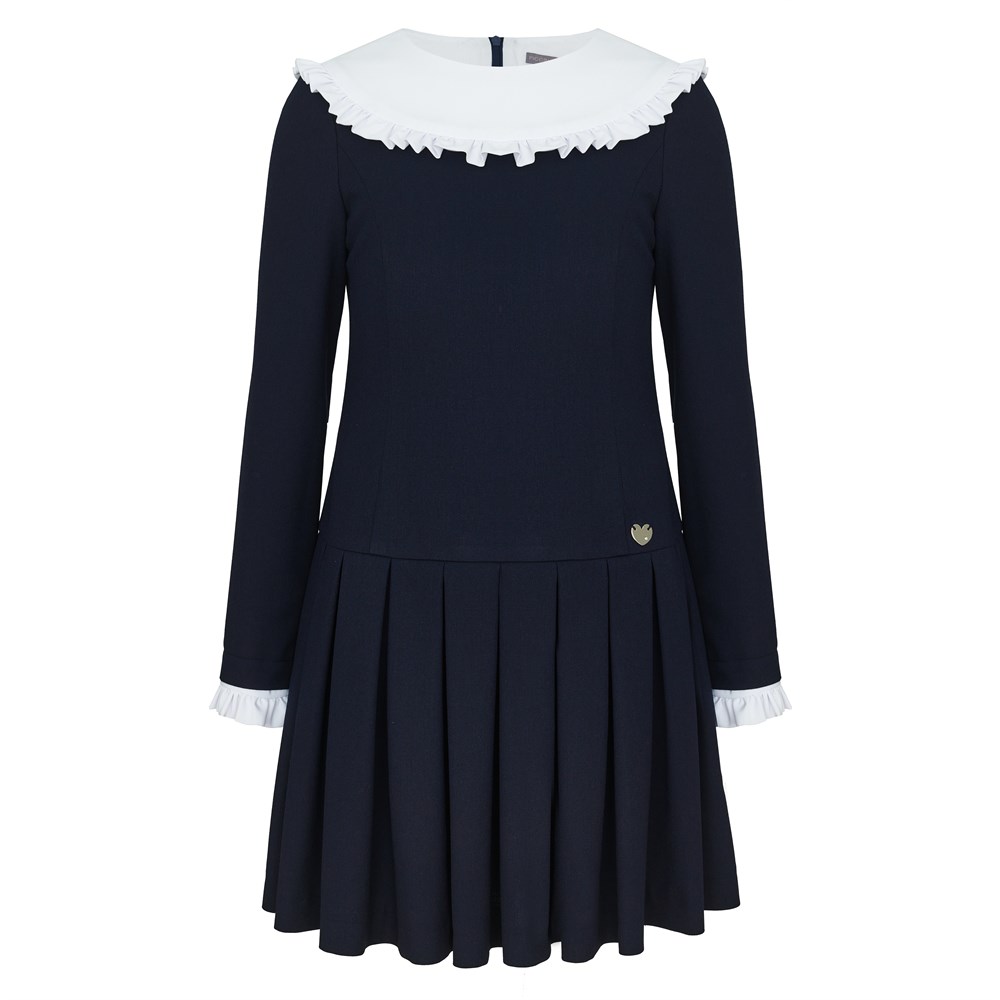 Платье украшено белой декоративной кокеткой. Также, платье можно дополнить манжетами. Манжеты продаются отдельно.