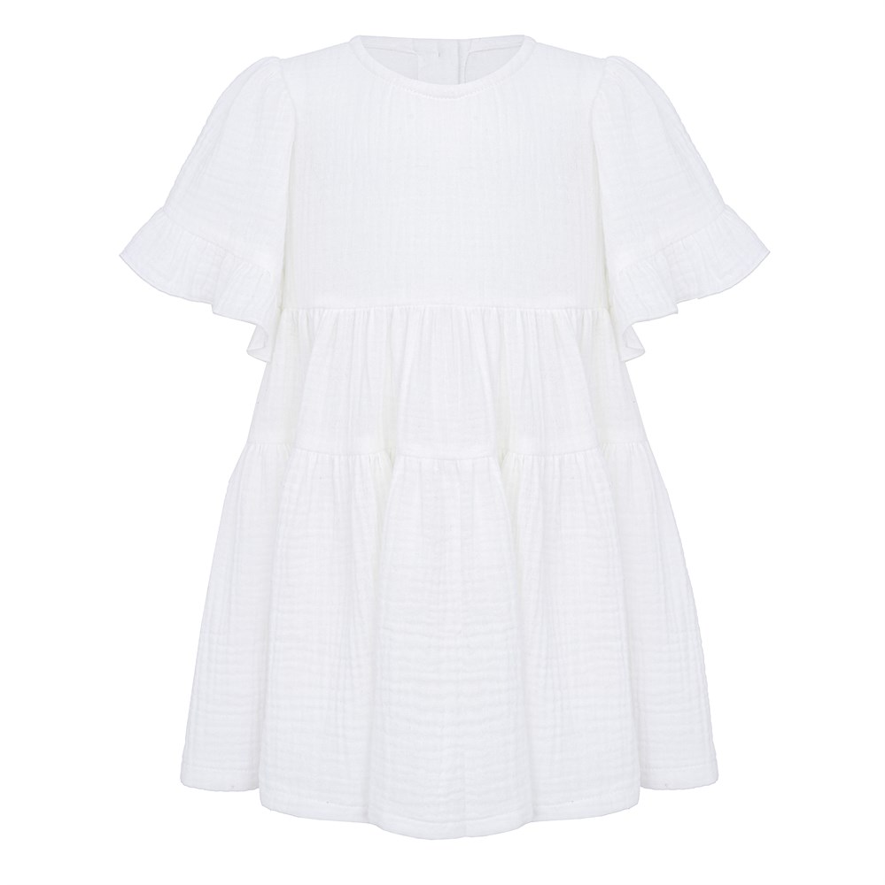 Платье муслиновое с короткими рукавами, цвет молочный