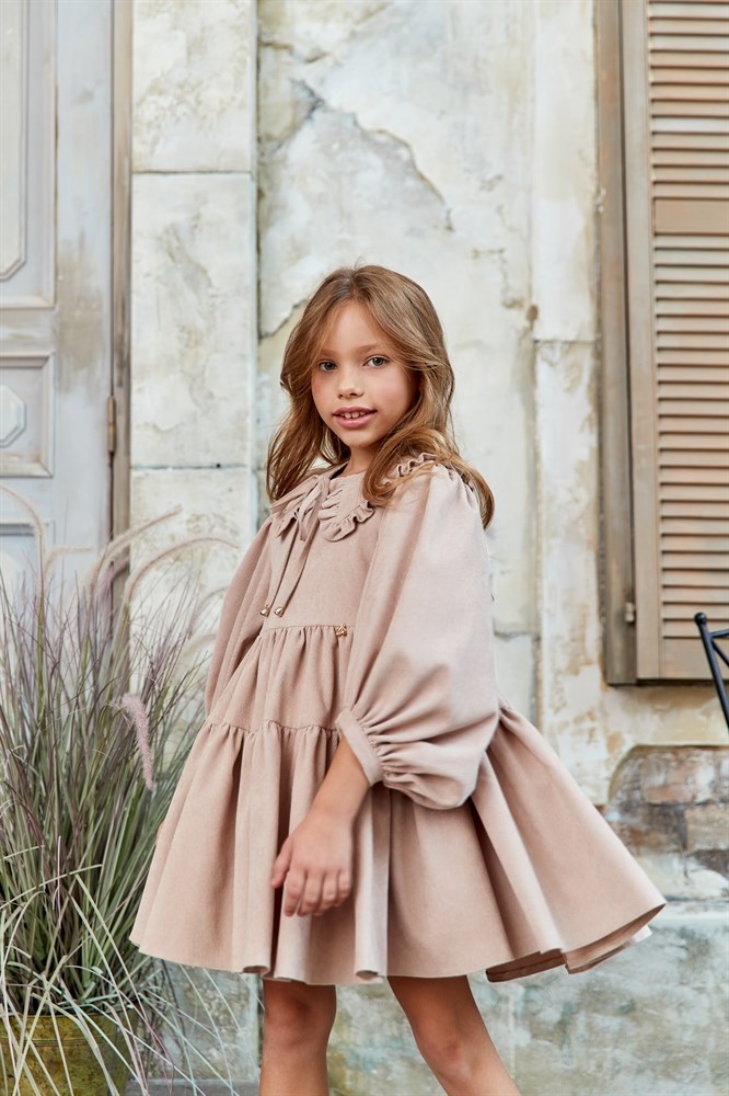 Платье вельветовое с воротником, бежевое